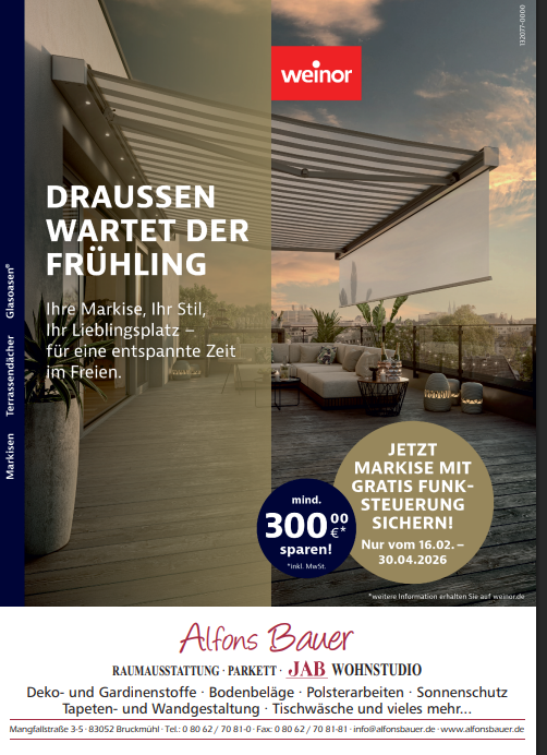 Verwandeln Sie Ihre Räume mit kreativen und maßgeschneiderten Einrichtungslösungen von Alfons Bauer. Ob elegante Vorhänge, stilvolle Bodenbeläge oder funktionale Sonnenschutzsysteme – wir schaffen Wohlfühlräume, die begeistern.